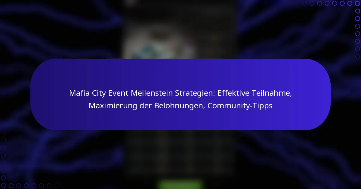 Mafia City Event Meilenstein Strategien: Effektive Teilnahme, Maximierung der Belohnungen, Community-Tipps
